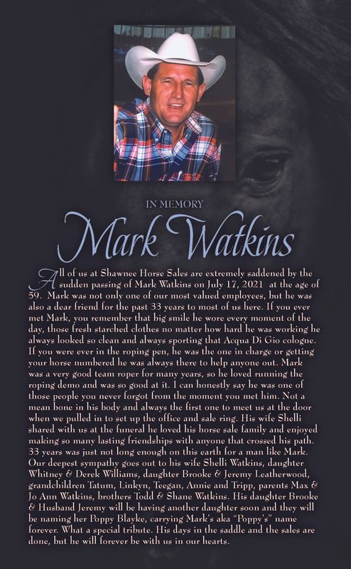 Shawnee Horse Sales LLC would like to thank all who have made this last year a huge success. Shawnee Horse Sales LLC. The Showcase Sale 2022.